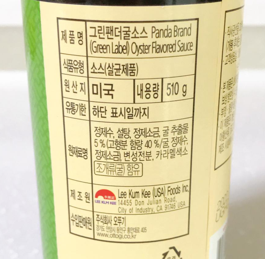 만약 원조 굴소스의 맛을 기대했다면 그린팬더 굴소스에 좀 실망할 수도 있는 이유이다...