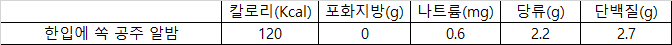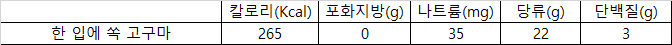 당류가 0인건 좀 의아하네요~ 옥수수 고구마 감자 다 탄수화물인데..