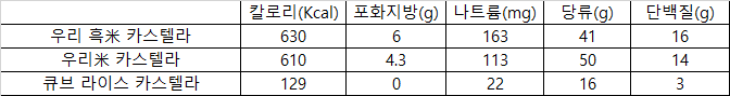 (우리흑미카스텔라(흑미)/ 우리미카스텔라 (흰쌀)/ 큐브 라이스카스텔라)