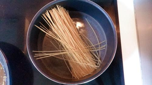 야채가 어느 정도 익어가면 다른 냄비에 글루텐프리 국수 (저는 밀가루가 0%인 보리면 '보리뚱'을 사용했어요ㅎㅎ) 를 2인분 삶아주어요. (저는 혼자 먹는거라 국수는 1인분만 사용. 나머지 1인분 소스는 밥이랑 먹으려고..)