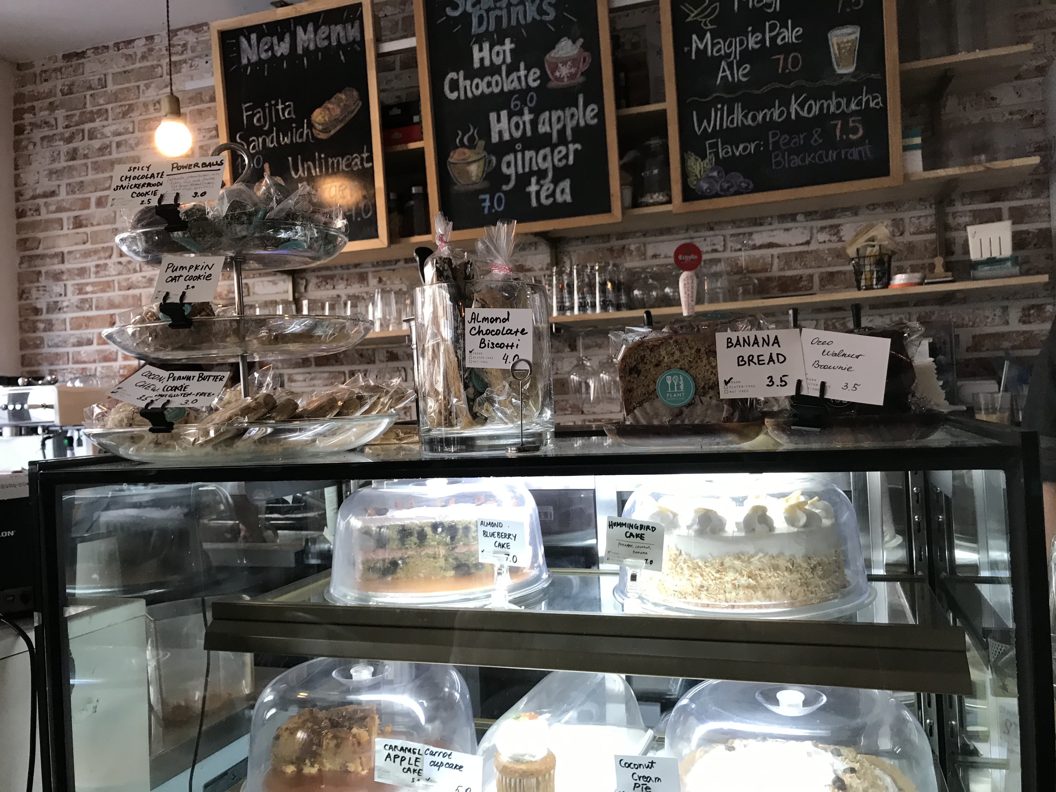비건 케이크 (노계란 노우유) 또한 팔고 있고, 차와 샐러드, 샌드위치, 파스타 등이 있다.