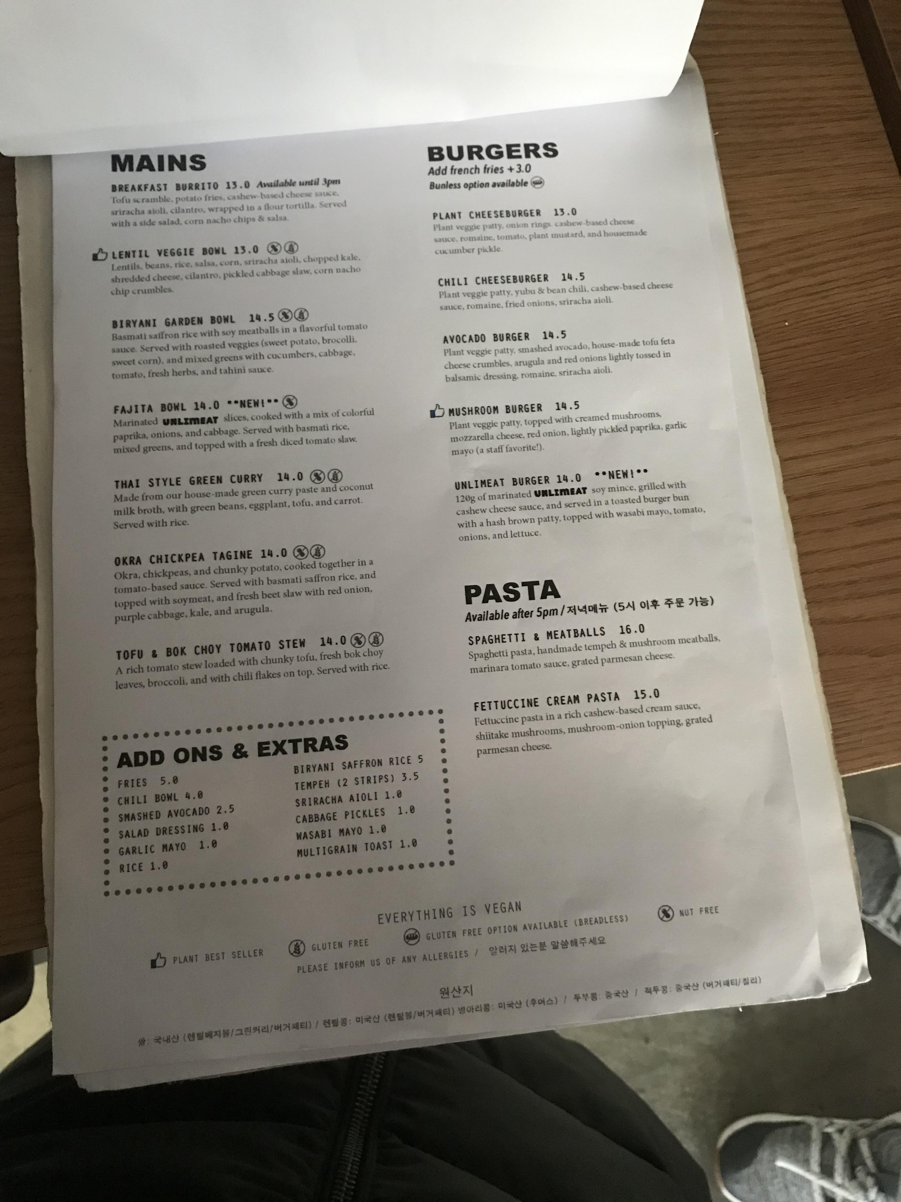 글루텐프리 전문은 아니고, 비건 (Vegan) 레스토랑인 플랜트인데, 글루텐프리 메뉴들이 따로 있어서, 메뉴판에 글루텐프리는 표시가 되어 있다..^^ ('밀' 모양이 그려져 있는데, 만약 헷갈리면 물어보자.)