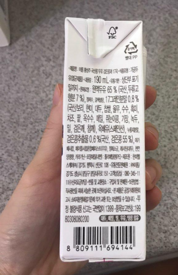 전체 원재료에서 국산 원액두유가 65%. 그 외에 정제수, 갈색설탕이 들어가고, 17곡 그레인분말이 0.8%. 설탕도 얼마나 들어가는지 얘기해주면 좋을텐데 ㅠㅠ