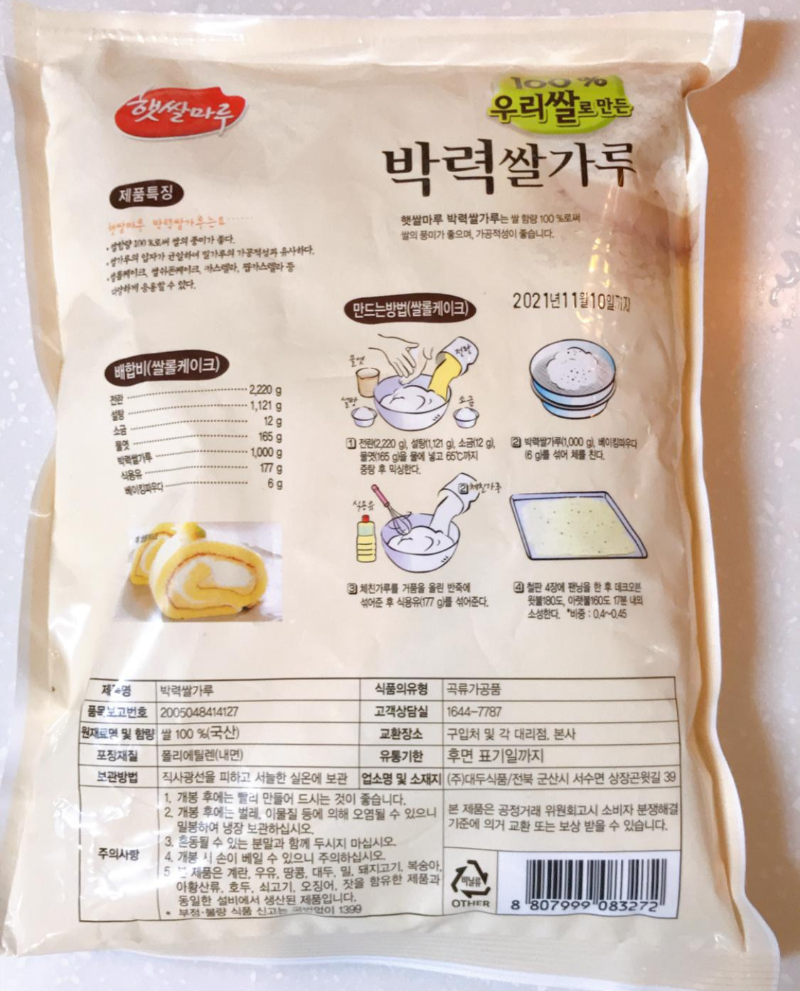 재구매 의사 있는 식감 좋은 햇쌀마루 100% 쌀가루!
